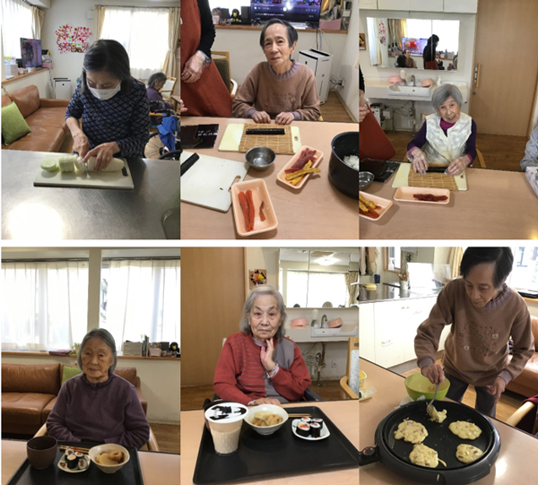 お寿司やオヤツを利用者様達で料理され召し上がっていました。