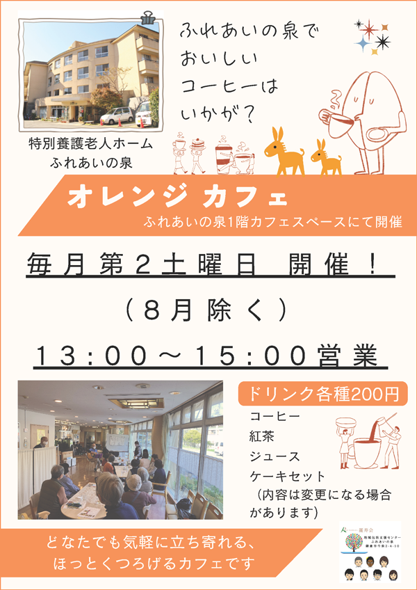 ふれあいの泉では毎月第2土曜日にオレンジカフェを1階カフェスペースにて開催しております。